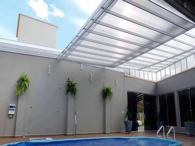 A cobertura abre e fecha é uma estrutura que permite a ventilação e protege o ambiente do sol e da chuva sem o prejuízo da luminosidade natural. Durável e resistente, pode ser aplicada em estrutura com pintura eletrostática branca, policarbonato cristal ou telha termoacústica. Deve ser feita sob medida, de acordo com a necessidade do cliente. Inovadora reúne tecnologia, design e sofisticação.